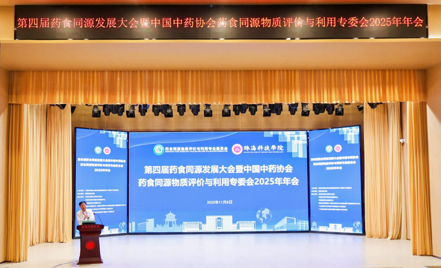 为深化药食同源领域产学研用协同创新,推动产业高质量发展,助力“健康中国2030”战略落地,2025年11月8日,第四届药食同源发展大会暨中国中药协会药食同源物质评价与利用专业委员会2025年年会在珠海科技学院国学院学术报告厅隆重举行。本次大会由中国中药协会药食同源物质评价与利用专业委员会主办,珠海科技学院承办,国家中药现代化工程技术研究中心药食同源与健康研究分中心、广东省药学会岭南中草药资源专业委员会、广东省食品学会药食同源与健康专业委员会、中国中药协会药酒专委会、中国酒业协会露酒分会等协办,汇聚多方力量搭建高水平交流平台。