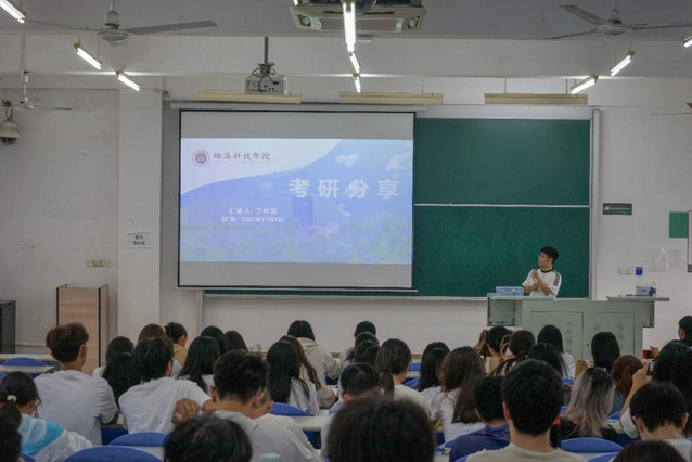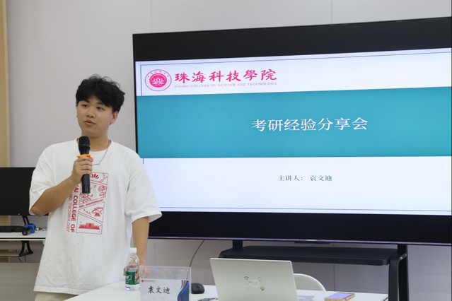 2025年10月18日下午15:30,袁文迪在笃学馆107室以“考研全流程经验”为题,提供实用建议。他强调“每周放纵日”的重要性,认为张弛有度更利于坚持。